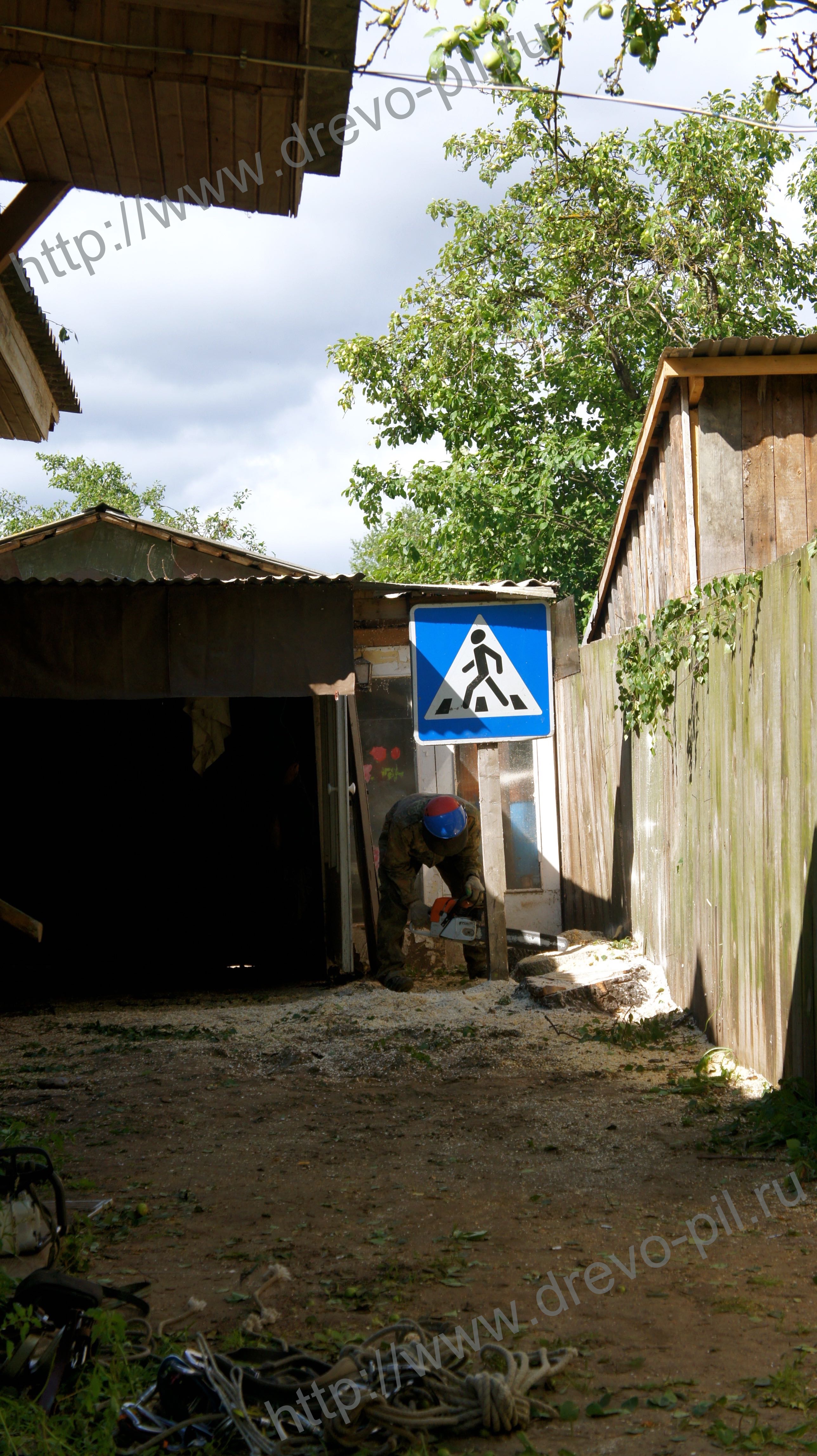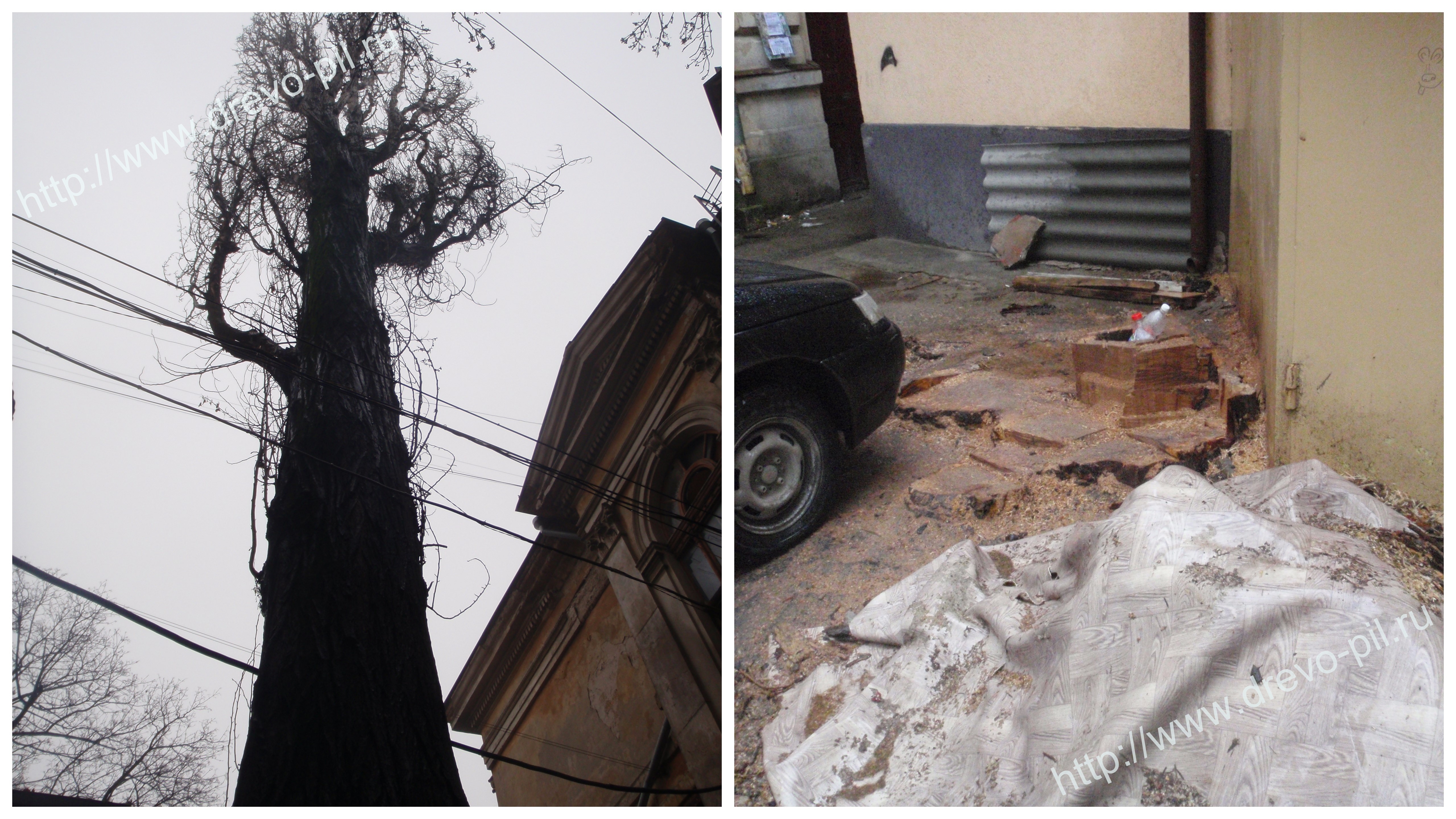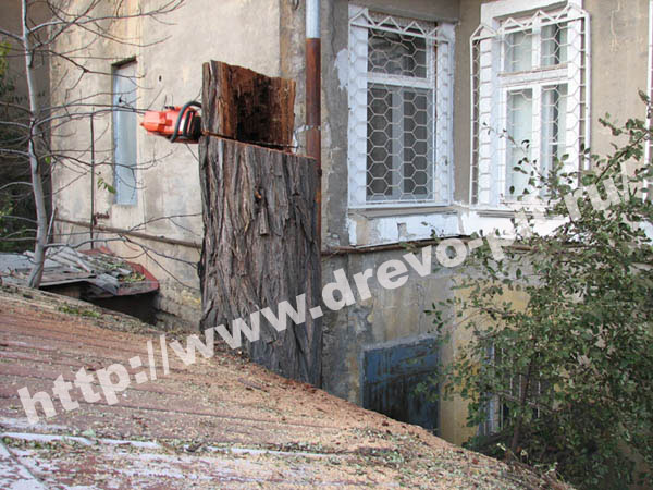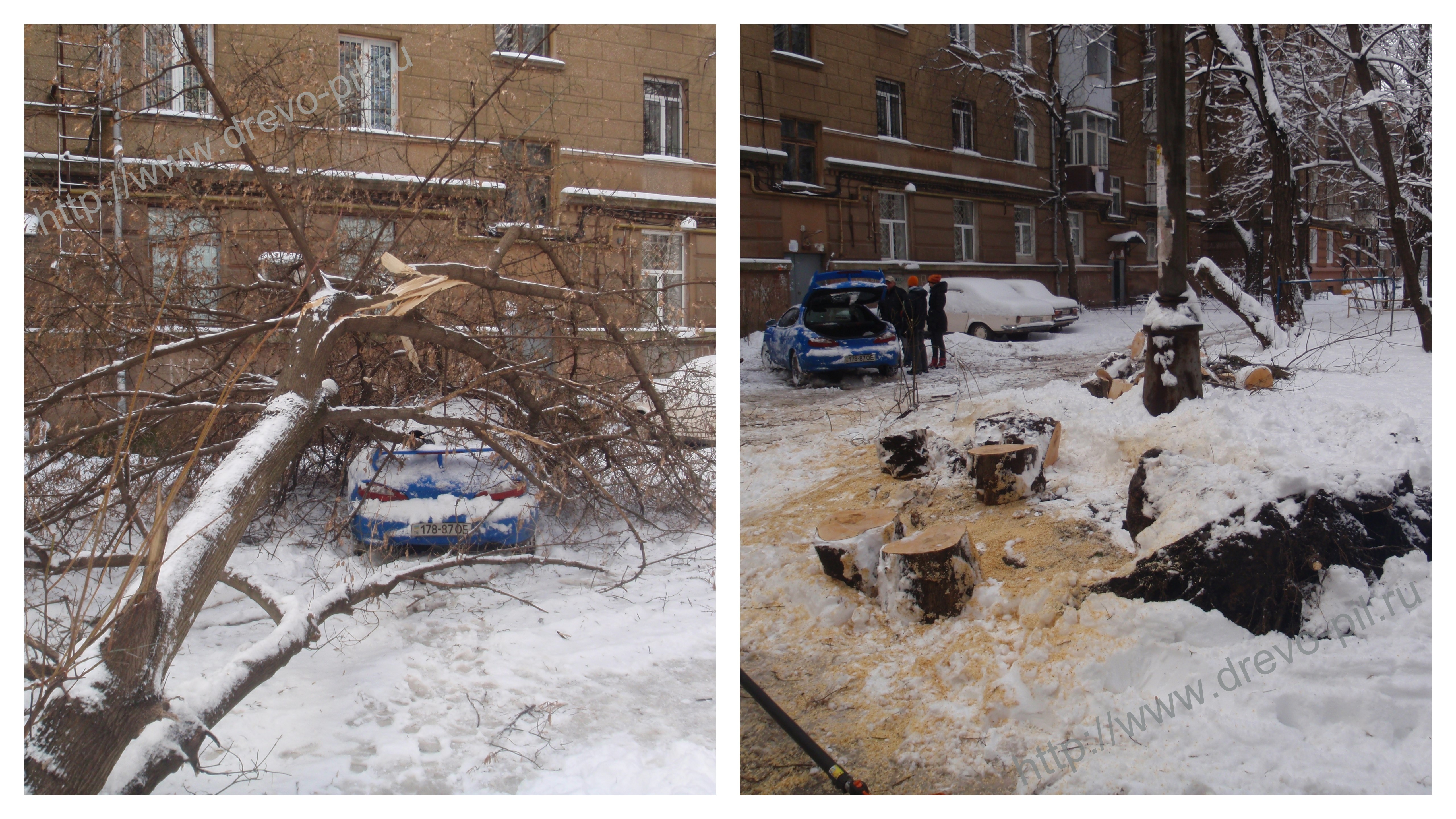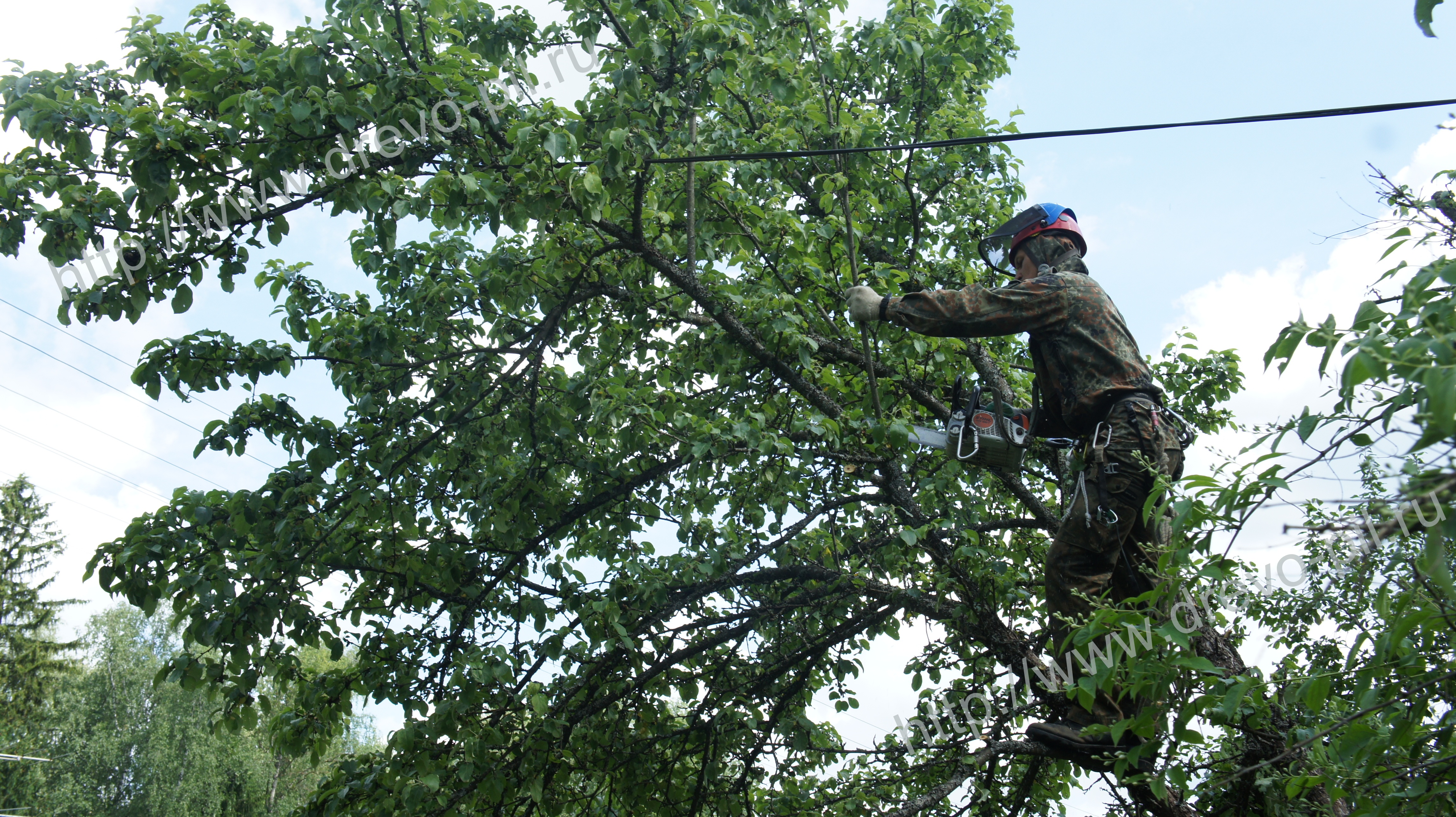 Обрезка деревьев .Провода, машины и крыши остались неповрежденными)